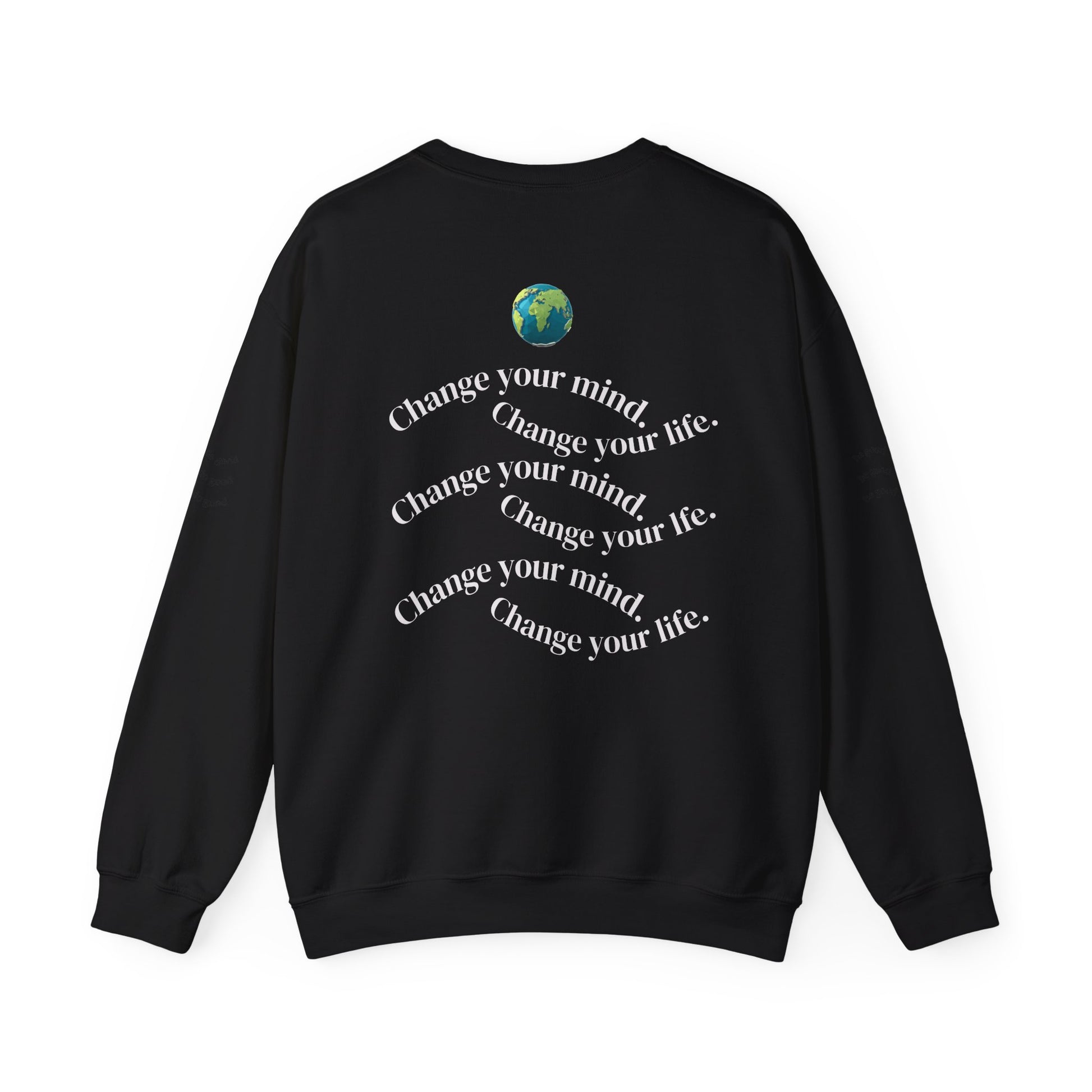 A cozy, statement-making crewneck built for everyday wear and quiet confrontation. Soft yet sturdy, the sweatshirt lays flat like a small manifesto: front text pushes back against dismissive rhetoric while a repeated back motif — ‘Change your mind. Change your life.’ — closes the loop with a calm, hopeful challenge. The black-on-black palette keeps the look subtle at a glance but sharp up close; thoughtful printing and optional embroidery details give it a handcrafted feel. Wear it when you want comfort and clarity — to campus talks, late-night discussions, or slow walks where words matter more than volume.